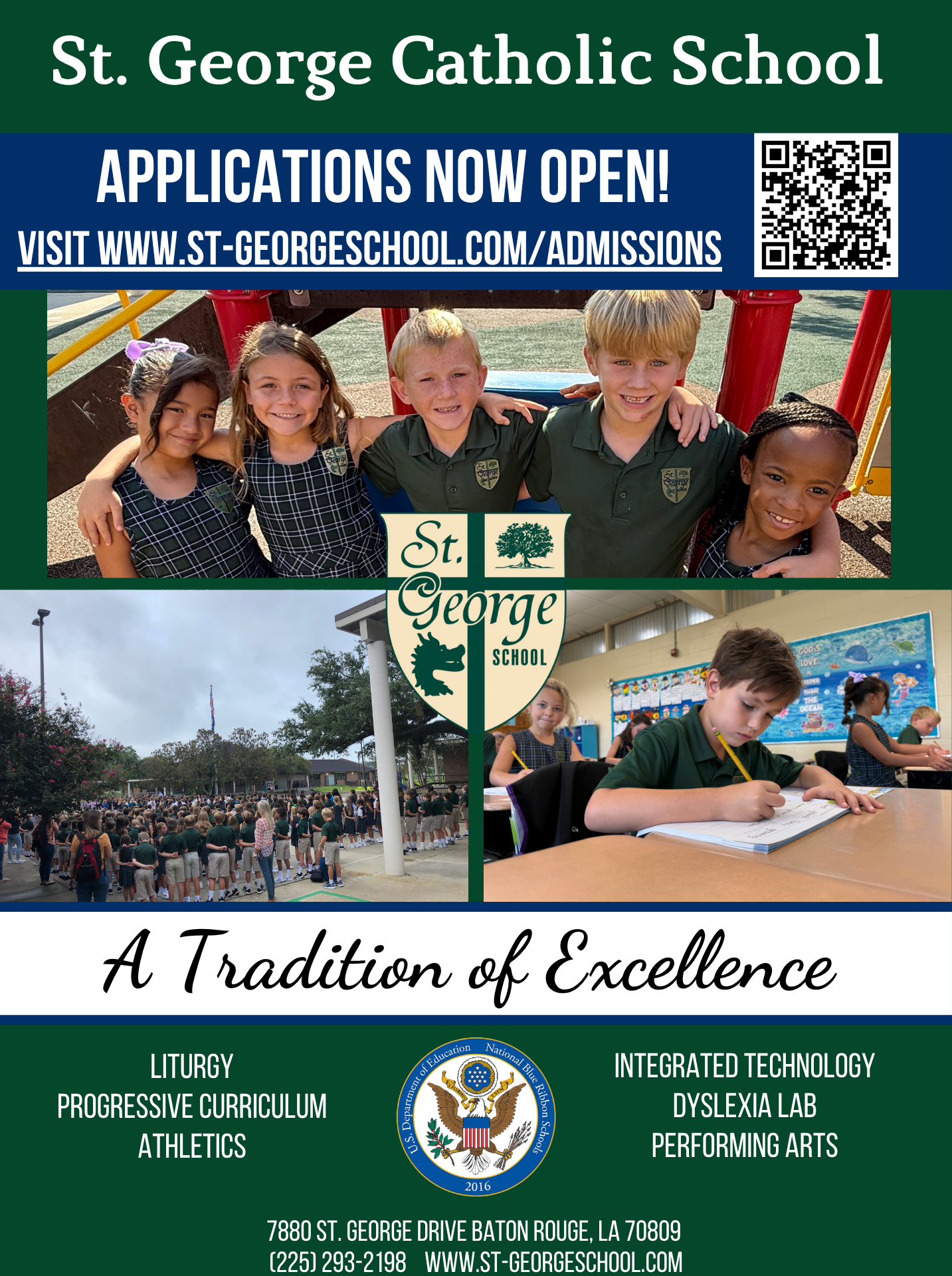 St. George School will comply in every way with the Diocesan Guidelines for admission of students as stated in the handbook of policies for the Schools of the Diocese of Baton Rouge.
